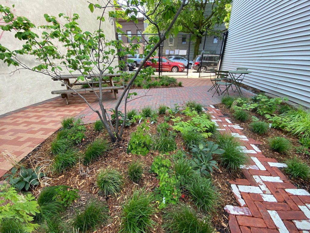 First, it reduced the project’s environmental footprint. Reusing existing materials averts new natural resource extraction and significantly reduces greenhouse gas emissions. Manufacturing new bricks requires firing clay in high-heat kilns powered by fossil fuels as well as transporting them over long distances to the construction site, resulting in high embodied carbon. By comparison, salvaging and reusing bricks in Dolly’s Park required minimal fossil fuel energy to operate the demolition equipment and only required human labor to transport the bricks to the park site.