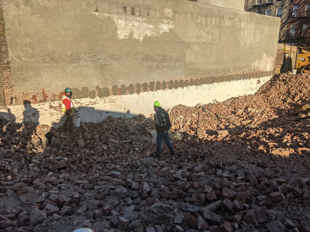 Because the brick walls were hastily torn down using conventional demolition methods, Field Form had to sort through piles of debris consisting mostly of broken brick fragments.